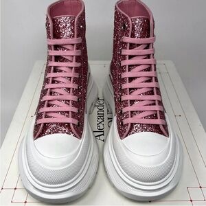 NWOB Alexander McQueen Pink Glitter Tread platform Sneakers. Size EU 37, 6.5 womens. No box.