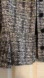 Black, white and beige tweed, round neck, button down jacket with peplum waist detail, black liner, hidden buttons and 3/4 length sleeves.