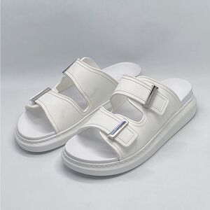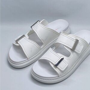 Oversized hybrid slides with a comfortable moulded footbed and silvertone logo-trimmed leather straps.