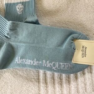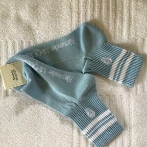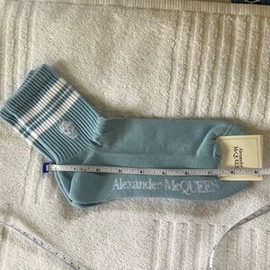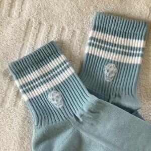 Alexander McQueen Unisex Skull Sport Socks Light Blue Striped SZ L