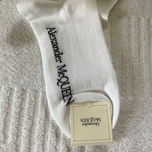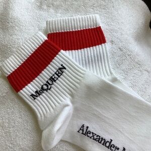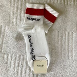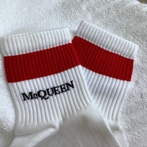 Alexander McQueen Unisex Sport Socks White Red Striped SZ L