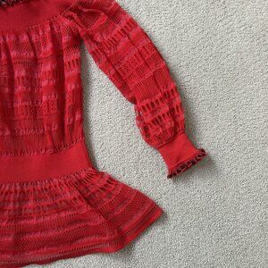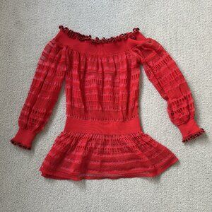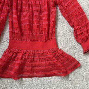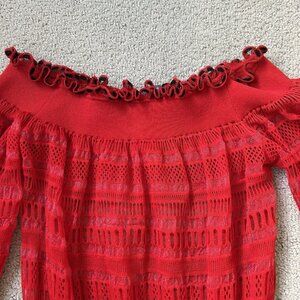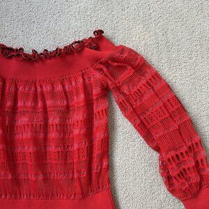 Alexander McQueen Vintage 90s Red Off The Shoulder Sheer Lace Romantic Small