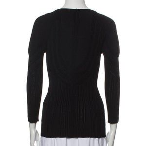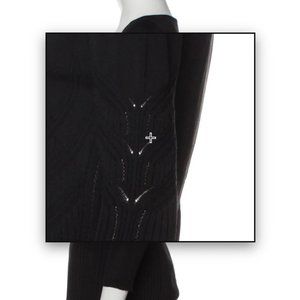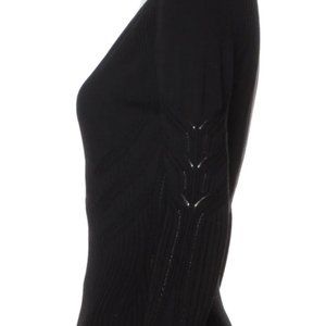 Form-fitting sweater with plunging neckline and knit details in the front back and down the arms that make it truly special.
