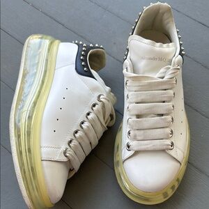 Alexander McQueen White Sneakers with Yellow Sole and Studs