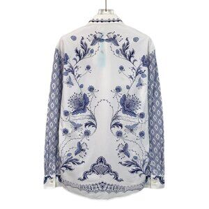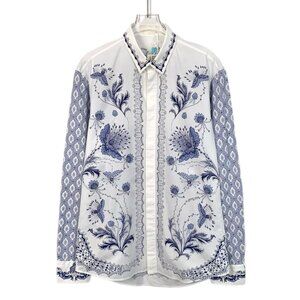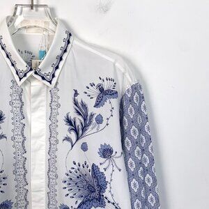 Alexander McQueen White/Blue Floral Long Sleeve Mens Shirt Size 48