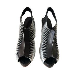 Alexander McQueen Women Cage Sandals US Size 7 EU 37 Black Silver Leather Heels