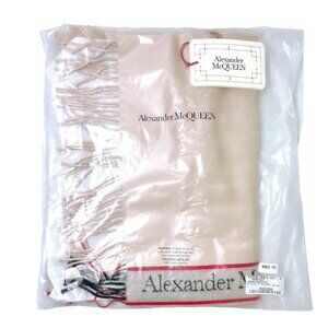 Alexander McQueen Womens Pale Pink Selvedge Logo Fringe Trim Scarf NWT