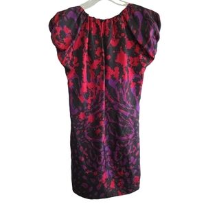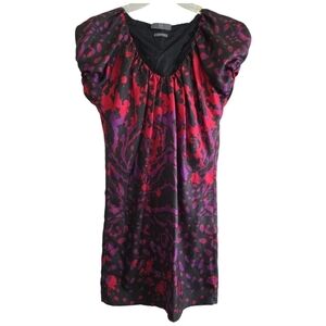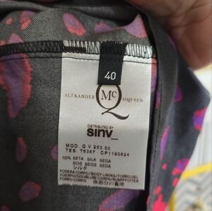 Alexander McQueen Y2K Silk Shift Dress Puff Sleeve 40 Or 4 Abstract Art McQ