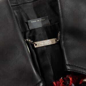 Alexander McQueen plaid woven multicolor coat. Size 42. Made in Italy. 62% Polyamide, 16% Cotton, 12% Viscose, 7% Wool, 3% Modal. Accents made from 100% Lambs Leather, and 100% Cupro. Includes small leather removable button closure accessory (pictured). Excellent condition.