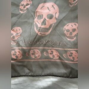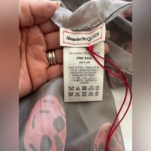 NWT-Alexander McQueen Classic Skull Print Silk Scarf In Grey/Pink