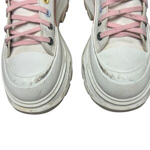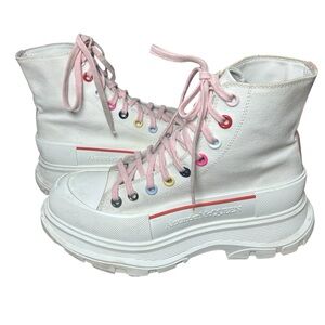 Alexander McQueen white canvas tread slick rainbow platform boots size 40 us 10
