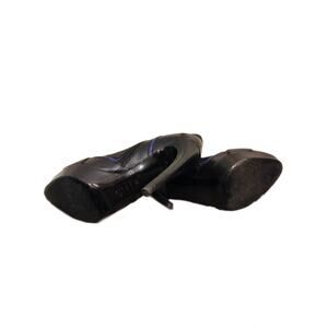 Alexander Mcqueen leather high stiletto ankle boots. Buckle detail straps. Black with blue detail. Inner zipper closure. 5" curved stiletto heel & 1" platform. Very minor wear on leather on side and stiletto as shown in pics. Not noticeable at all. Gorgeous ankle boots! Authentic Alexander Mcqueen!