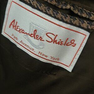 Alexander Shields 60s Vintage Tan Houndstooth Sport Jacket, Size 38R. Pit to pit 22", shoulder to hem 31", 2 Button Closure, Notch Collar, Made in Poland, Park Avenue Design, Feels Like Silk Blend(Missing fabric tag). Good Pre-Owned Condition
