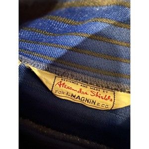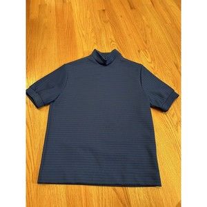 Alexander Shields I Magnin Striped Short Sleeve Shoulder Snap Button Turtle Neck.