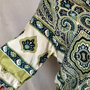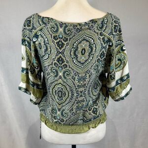 Alexander Vittoria 100% silk sage green boho print smocked top size large
