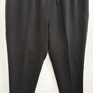 Straight leg crepe casual trousers detailed with elastic waistband and drawstring, two side open pockets and two rear welt pockets. Comfy fit. Great Pre-owned condition .