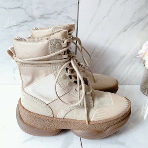 Alexander Wang A1 Mixed Tall Combat Boot Platform Lace Up Tan Suede Brow