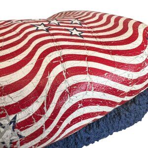 Alexander Wang A1 platform slide sandals, slip on / open back, super chunky rounded rubber platform, red white and blue with stars and stripes, EU 38 / US 8, preowned and shows wear on the soles, fading on the footbed, worn spot near the toe area, cracking/fading and wear on the strap - see photos