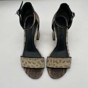 Alexander Wang Abby Animal Print Leather Block Heel Sandals - Natural - 36.5