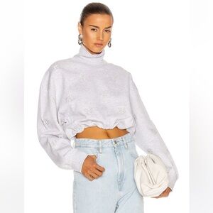 Alexander Wang All Over Logo Embroidery Monogram Turtleneck Sweatshirt Crop Top