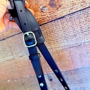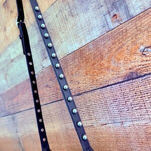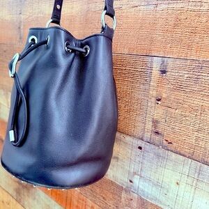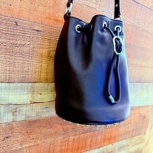 Chic and versatile black buttery leather bucket bag with stylish studded details. Perfect for any occasion.