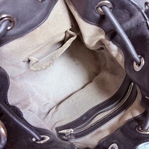 Chic and versatile black buttery leather bucket bag with stylish studded details. Perfect for any occasion.