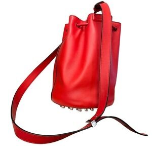 Alexander Wang Alpha Red Leather Bucket Bag Silver stud Designer Purse One Size