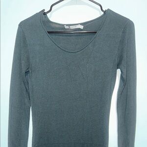 This elegant black dress by Alexander Wang showcases a bodycon fit with long sleeves and a classic crew neck. Its minimalist design makes it perfect for both casual and work occasions, offering a sophisticated and versatile look.