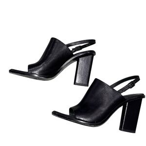 Alexander Wang Black Leather Cole Peep Toe Slingback Mule Sandals Shoes size 39.5