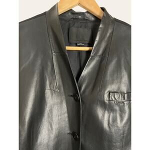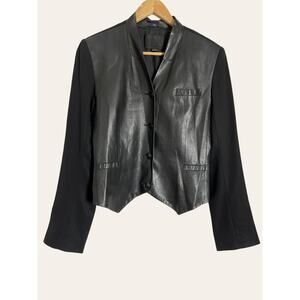 Alexander Wang Black Leather Mixed Media Button Front Blazer Jacket Size 4