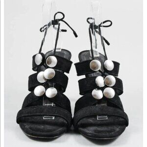 Alexander Wang Black Suede Strappy 'Allegra' Heeled Mules Size 7.5