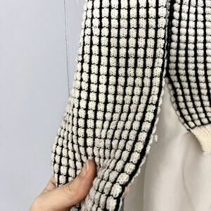 Alexander Wang Black White Crewneck Waffle Knit Layered Ruffle Sweater S