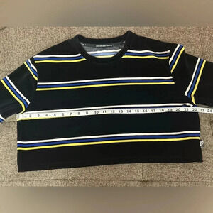 Stylish long sleeve top with black and white stripes. Cropped design. Perfect for casual wear.