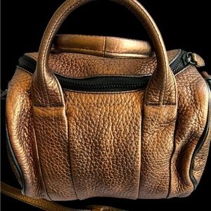 Super cool hard to find Bronze Alexander Wang bag in excellent condition with only minor signs of wear. It is a beautiful rich bronze color with black piping and trim. There is no damage or discoloration. This is by far the most beautiful Alexander Wang i have seen. Photos do not capture how pretty it is. The inside is clean. Comes with a long detachable shoulder strap. A versatile bag that can be worn on the shoulder, or carried as a satchel. I love these chic stylish bags.