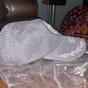 Stylish Alexander Wang cap with intricate embellishments. Features bold logo design. Ideal for a chic look.