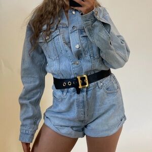 Tags: ALEXANDER WANG, nyc, Cotton, Denim Short Jumpsuit, light wash, street style, denim outfit, designer, summer, spring, vacation