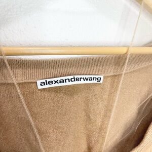 Alexander Wang Cropped Drape Neck Sweater In Tan Large