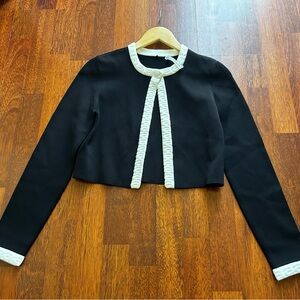 Alexander Wang Cropped Logo Jacquard Trim Stretch Knit Cardigan No Size/Care Tag