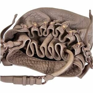 Alexander Wang Diego Bucket Bag (shoulder bag/tote). Retail $1,100. The color is Latte... a neutral color that works for all seasons. The textured lamb leather is a neutral color. Features: Rose gold hardware, flat handle & single adjustable shoulder strap, and two exterior open pockets/compartments on each side of the bag. The interior features satin lining, a leather logo patch, and a single pocket with zipper closure.Open Top. Protective feet at the base.