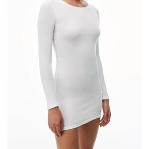 Alexander Wang Dress Womens Medium White Long Sleeve Crewneck Micro Ribbed