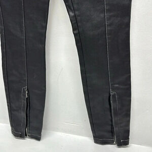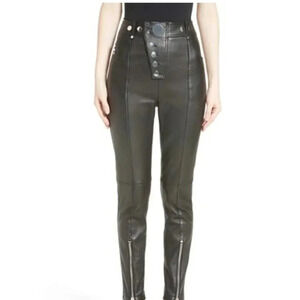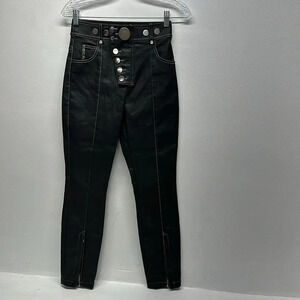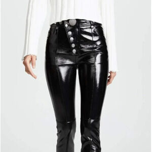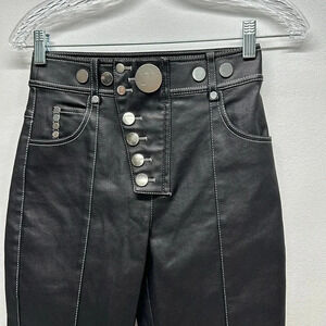 Alexander Wang Faux Leather Pants Trousers Silver Snaps Zip Detail Black Size 0