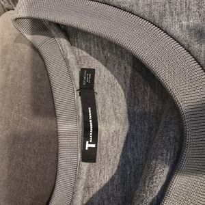 Stay cozy and stylish with this versatile gray sweater / sweatshirt. It features a minimalist design with pleat details at hem line and it feels like a light neoprene sweatshirt.