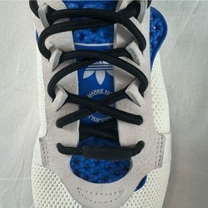 Stylish kids sneakers by Alexander Wang. Features a white base with blue accents. Comfortable and trendy design.