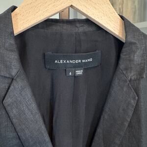 Alexander Wang Linen Blazer Black Glossy Silk Lined Single Breasted Jacket 4 S