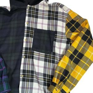 Alexander Wang Men’s Wool Plaid Tartan Patchwork Hooded Shirt Button Down Medium