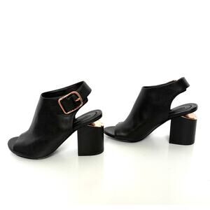 Alexander Wang Nadia Leather Peep-Toe Block Heel Sandals 35.5 Rose Gold