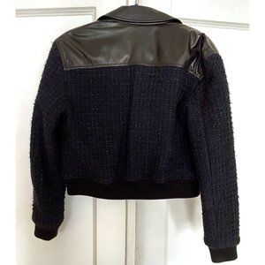 Nubby tweed jacket by Alexander Wang with thick ribbed wrist cuffs, double breast snap pockets and zip front closure. Size XS. Minor pilling.