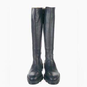 Step out in style with these elegant black knee-high leather boots. Perfect for any occasion, these boots offer both comfort and sophistication.