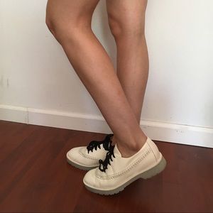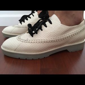 White snakeskin loafers in size 40 with chunky sole and black laces. Worn just once, the size runs small and they were too tight for me! Comes with original shoebox.