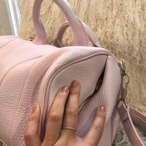 Blush Dumbo leather Alexander Wang Rockie duffel bag w/ gold tone hardware, detachable flat shoulder strap, hidden exterior zipper pockets and three pockets at interior wall.